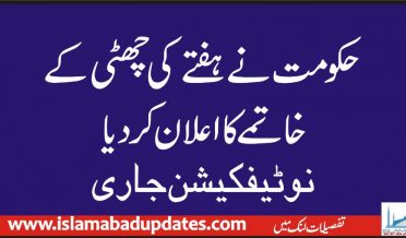 حکومت نے ہفتے کی چھٹی کے خاتمے کا اعلان کردیا،نوٹیفکیشن جاری