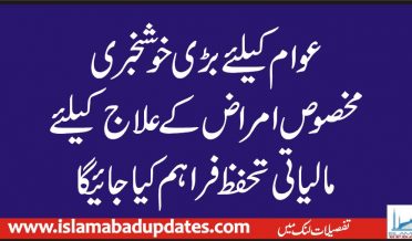 عوام کیلئے بڑی خوشخبری،مخصوص امراض کے علاج کیلئے مالیاتی تحفظ فراہم کیاجائیگا
