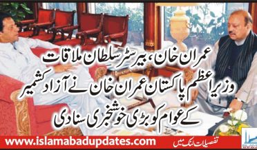عمران خان،بیرسٹرسلطان ملاقات،وزیراعظم پاکستان عمران خان نے آزادکشمیرکے عوام کوبڑی خوشخبری سنادی