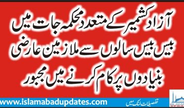 آزادکشمیرکے متعددمحکمہ جات میں بیس بیس سالوں سے ملازمین عارضی بنیادوں پرکام کرنے میں مجبور