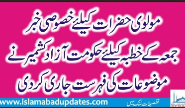 مولوی حضرات کیلئے خصوصی خبر،جمعہ کے خطبہ کیلئے حکومت آزادکشمیرنے موضوعات کی فہرست جاری کردی