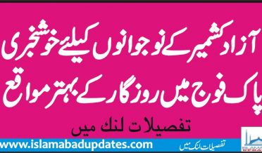 آزادکشمیرکے نوجوانوں کیلئے خوشخبری،پاک فوج میں روزگارکے بہترمواقع