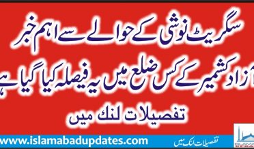 سگریٹ نوشی کے حوالے سے اہم خبر،آزادکشمیرکے کس ضلع میں یہ فیصلہ کیاگیاہے