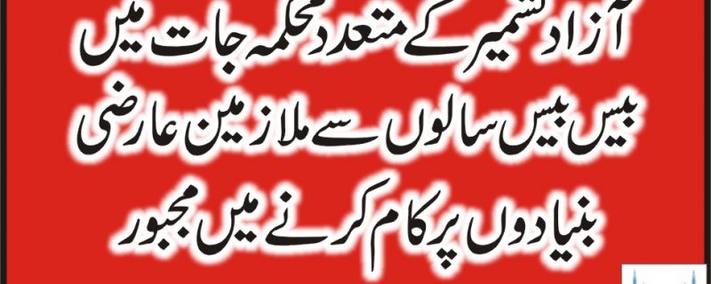 جہلم ویلی(اسلام آباداپ ڈیٹس)آزادکشمیر کے محکمه تعمیرات عامه .برقیات .جنگلات.و دیگر محکمه جات کے ورکچارج ملازمین عرصه بیس بیس اور پچیس سالون سے عارضی بنیادون پر کام کرنے پر مجبور.حکمرانون کی عدم دلچسپی سوالیه نشان بن چکی هے.مگر انکو مستقل کرنے کا حکومت کے پاس کوی ایجنڈه نهین هے.عرصه دراز سے عارضی بنیادون پر کام کرنے والے اس محنت کش طبقه کی عمرین بهی اوور هونے لگ گئ.نه صرف انکی مستقلی کا معامله حل هو رها هے بلکه ورکچارج بنیادون پر کام کرنے والے اس محنت کش طبقه نو نو هزار روپے ماهوار تنخواه دیکر ٹرخایا جا رها هے.حکومتی نوٹیفکیشن کے مطابق محنت کش کی کم سے کم اجرت پندره هزار مقرر کر رکهی هے مگر بیوروکریسی اس نوٹیفکیشن پر عمل درآمد کرنے کے بجاے روڑے اٹکا رهی هے.بیوروکریٹس جو ماهانه ستر هزار اور لاکه لاکه روپے تنخواه حاصل کرنے کے باوجود بهی خوش نهین کیا مزدور مهنگای کے اس دور مین نو هزار لیکر گزر بسر کر سکتا هے.وزیراعظم آزادکشمیر و چیف سیکرٹری آزادکشمیر تعمیرات عامه سمیت جمله محکمه جات کے ورکچارج ملازمین کی کم سے کم تنخواه کو حکومتی نوٹیفکیشن کے مطابق عمل درآمد کروائین اور انکی مستقلی کے حوالے سے اسمبلی فلور پر قانون سازی کرین تاکه انکا مستقبل محفوظ هو سکے.