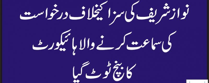 اسلام آباد(مانیٹرنگ ڈیسک)شریف خاندان کی مشکلات ختم نہ ہوئی، لاہور ہائیکورٹ کا نوازشریف، مریم نواز اور کیپٹن صفدر کی سزا کیخلاف درخواست کی سماعت کرنے والا بنچ ٹوٹ گیا۔ تفصیلات کے مطابق نوازشریف، مریم نواز اور کیپٹن صفدر کی سزا کیخلاف درخواست کی سماعت کرنے والا لاہور ہائیکورٹ کا بنچ ٹوٹ گیا ہے ۔ لاہور ہائیکورٹ کے فل بنچ نے شریف فیملی کی سزاؤں کیخلاف درخواست کی سماعت کی، درخواست گزار نے عدالت کے رو برو موقف اختیار کیا کہ نیب کا قانون ختم ہو چکا سارا ٹرائل غیر قانونی ہے۔جسٹس شمس محمود مرزا نے شریف فیملی کی سزاؤں کیخلاف کیس کی سماعت سے معذرت کرتے ہوئے کہا کہ ذاتی وجوہات کی بنا پرکیس نہیں سن سکتا۔جسٹس شمس محمود مرزا کی معذرت سے 3 رکنی فل بنچ ٹوٹ گیا،اس پر نیابنچ تشکیل دینے کیلئے فائلیں چیف جسٹس لاہورہائیکورٹ کوارسال کرد ی گئی ہیں۔